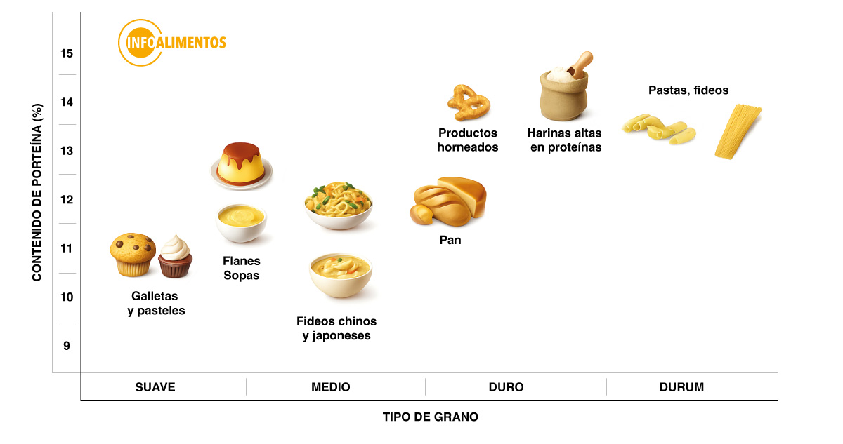 • Los trigos destinados a la fabricación de tortas y galletitas tienen como máximo 11% de proteínas, mientras que los usados para pan de molde necesitan, como mínimo, el 12%